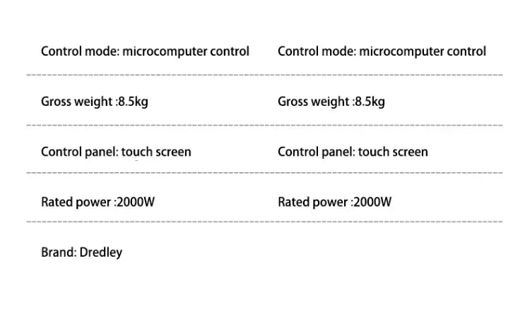 Specifiche tecniche: 2000W, 220V, rivestimento antiaderente, mescolamento automatico, controllo temperatura.