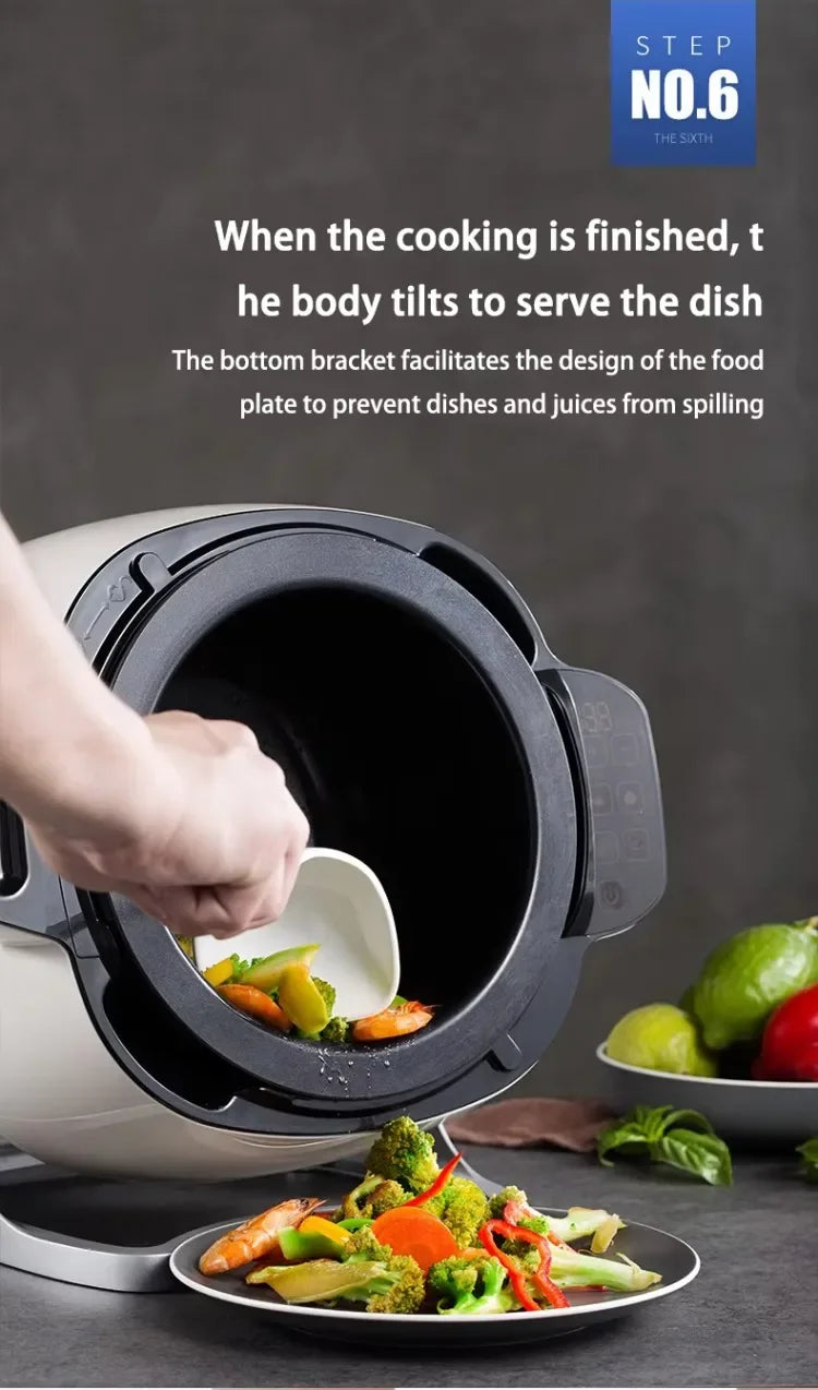 Il sistema di mescolamento automatico garantisce una cottura uniforme senza bruciature o punti crudi. Perfetto per chi vuole cucinare piatti asiatici autentici, saltati di verdure, riso fritto e molto altro senza dover stare costantemente davanti ai fornelli.