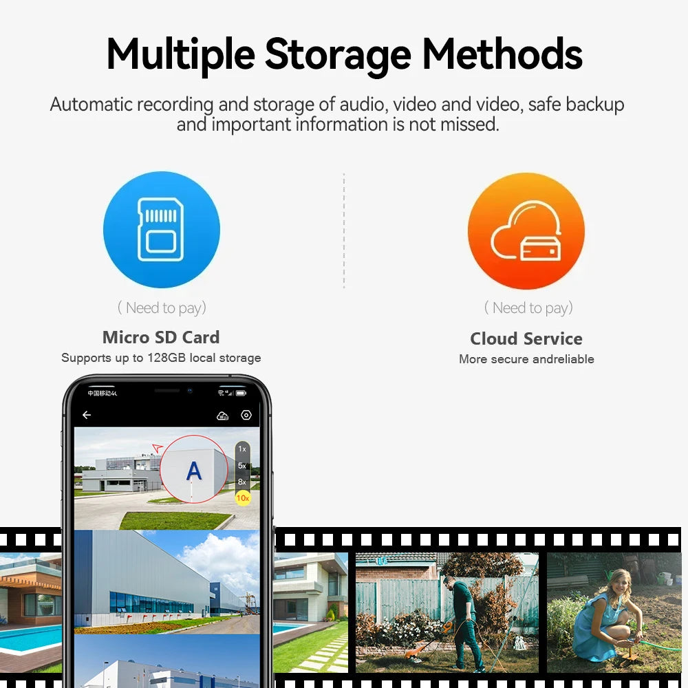 Proteggi ogni angolo della tua abitazione con la nostra telecamera WiFi professionale da 25MP dotata di cinque lenti indipendenti. Grazie alla tecnologia PTZ a 720°, non sfuggirà nulla al tuo controllo.