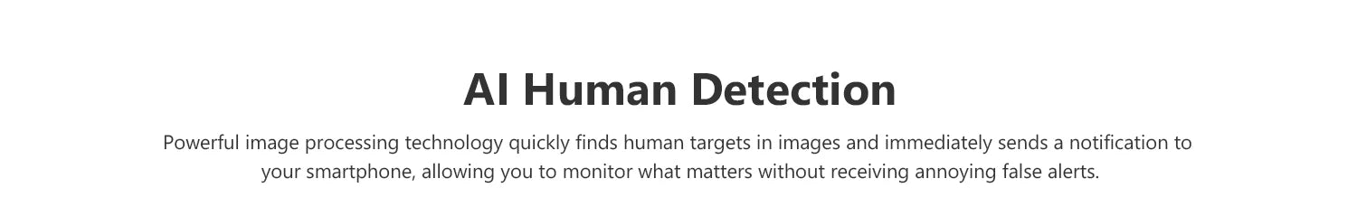 Powerful image processing technology can find human targets only in less than 1 second and the notification will be rapidly sent to your phone, no false alerts.