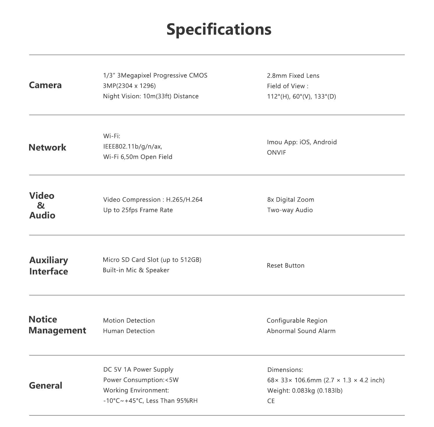 Human Detection | 3MP | H.265 | Abnormal Sound Alarm | Night Vision | Built-in Mic | Cloud