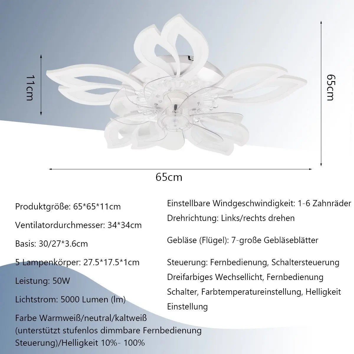 Ventilatore da Soffitto con Luce LED 85W - Design Floreale Silenzioso con Telecomando