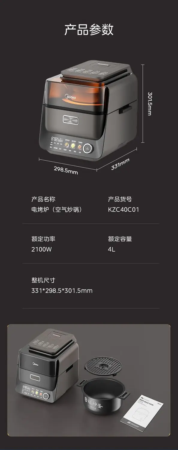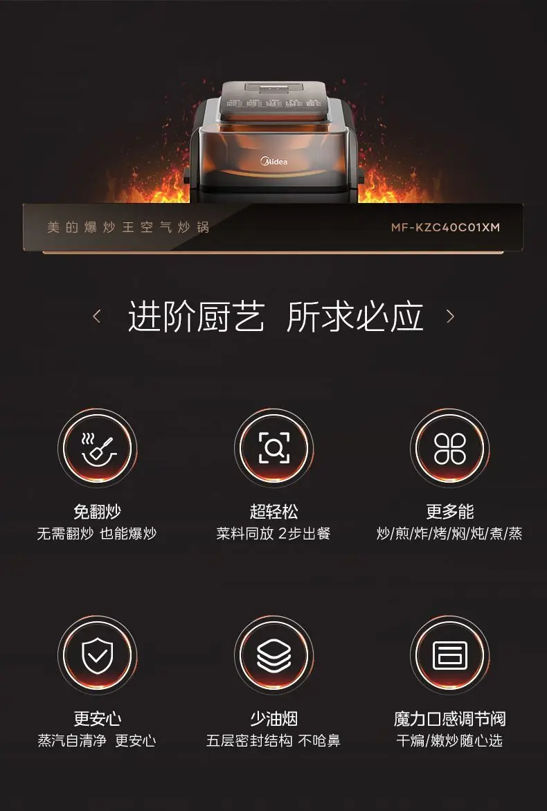 Air Fryer Smart KZC40C01XM – Doppia Fonte di Calore Cottura Senza Ribaltamento, 4 Funzioni, Design Premium