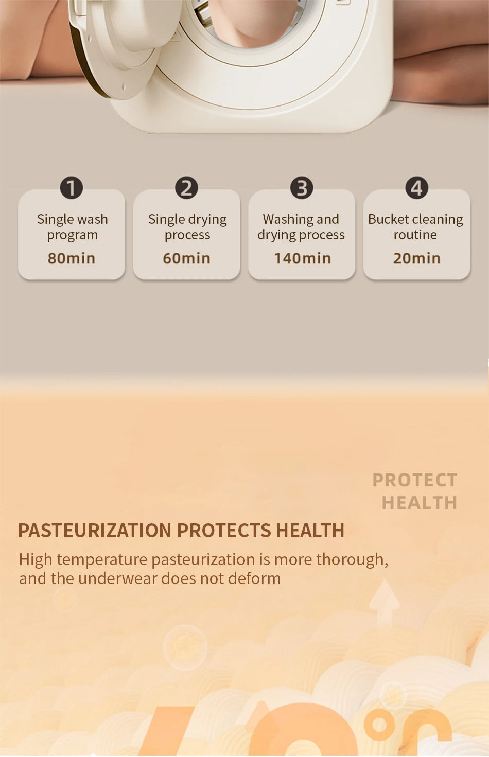 Questa lavatrice automatica a tamburo è progettata per lavare e asciugare in modo delicato e igienico l’intimo, i calzini e i piccoli capi.