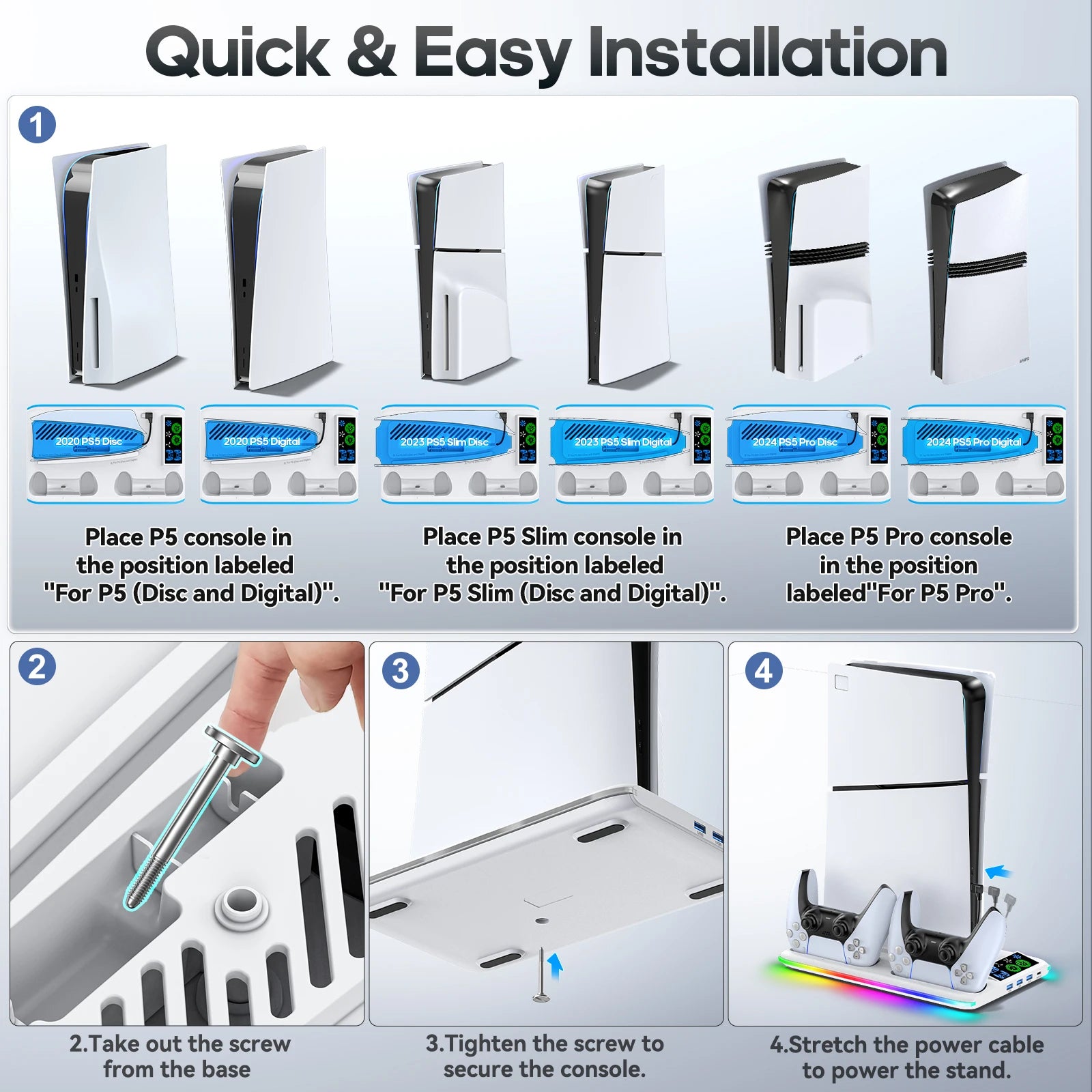 - Base Stabile e Sicura - Design antiscivolo che protegge la console da cadute accidentali