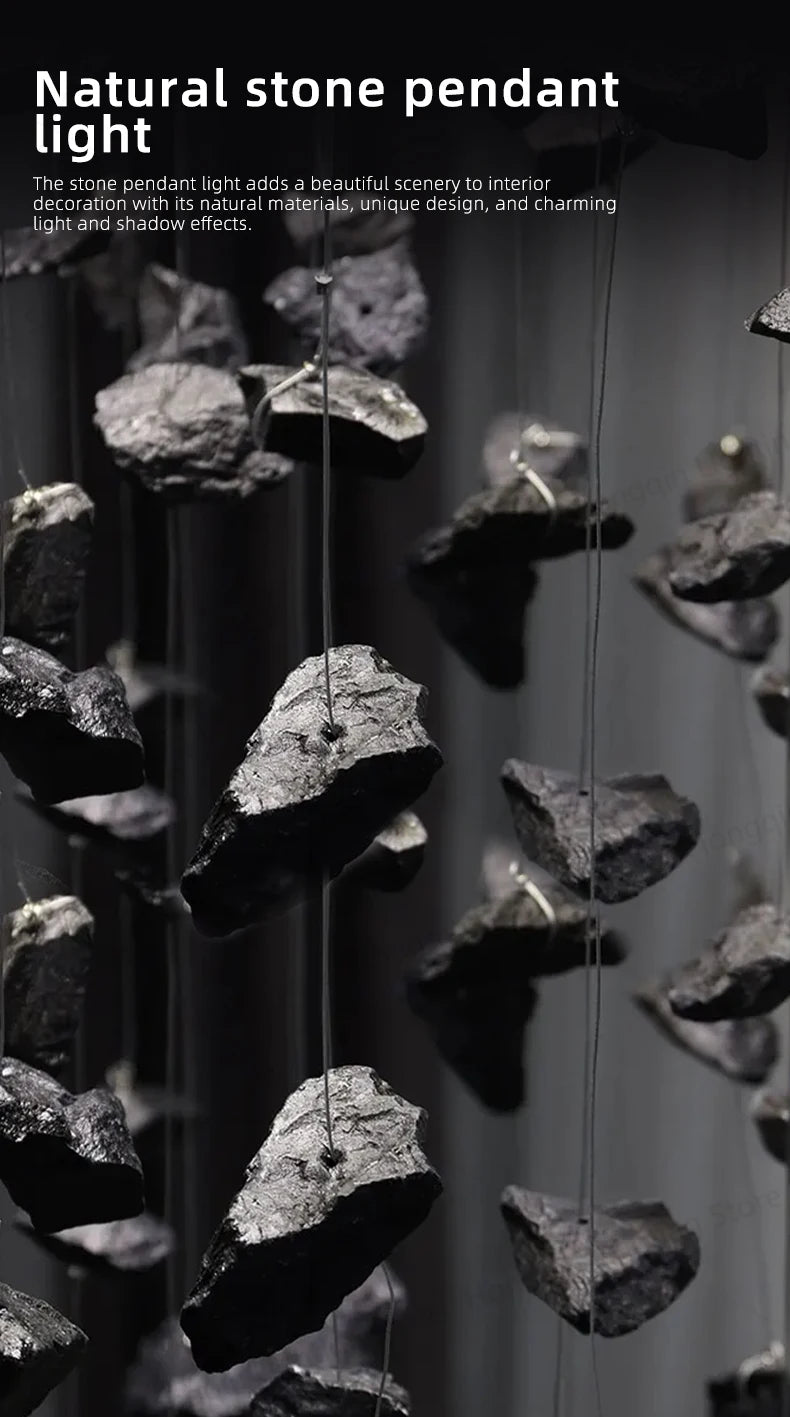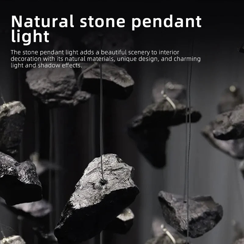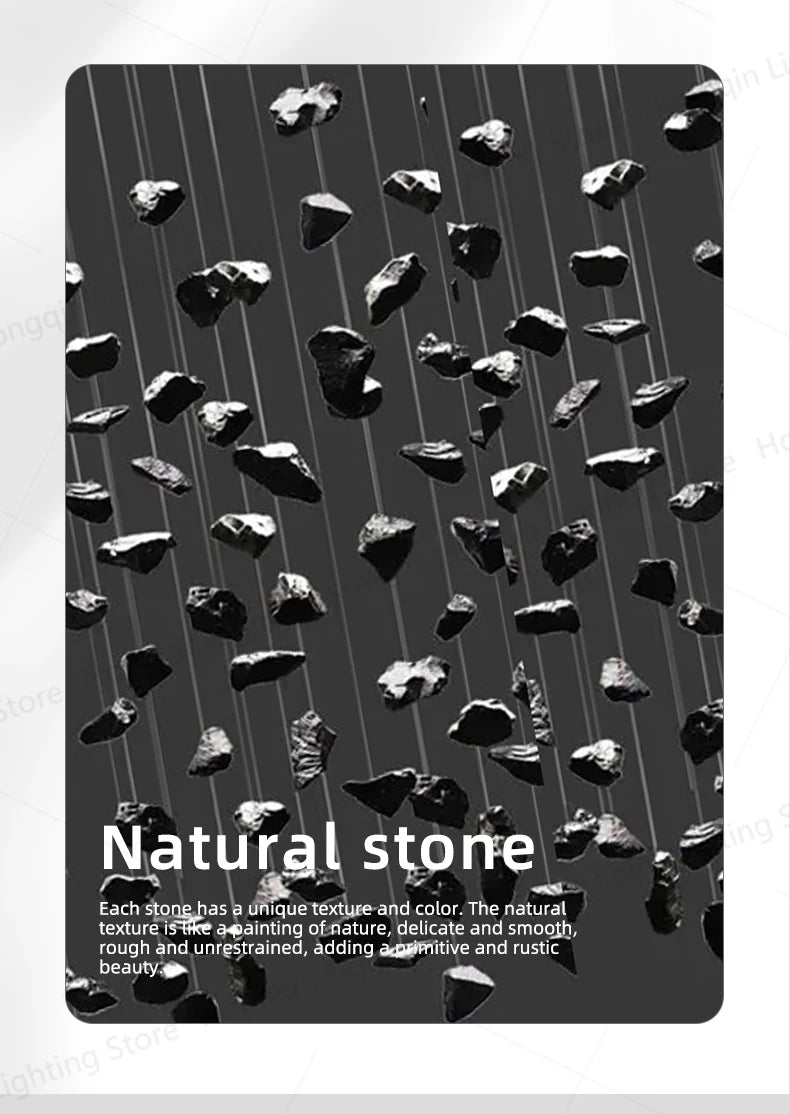 Materiali autentici: pietre naturali genuine che aggiungono texture e profondità all'illuminazione.