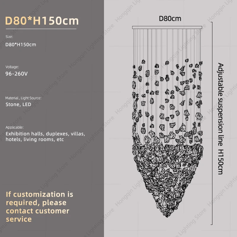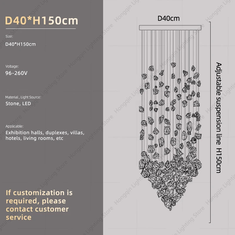 Immagina di entrare nella lobby del tuo hotel e vedere una cascata di luce irregolare che scende dal soffitto, con pietre naturali e cristalli che creano giochi di luce tridimensionali. Questo lampadario non illumina semplicemente uno spazio, lo trasforma in un'esperienza visiva memorabile.