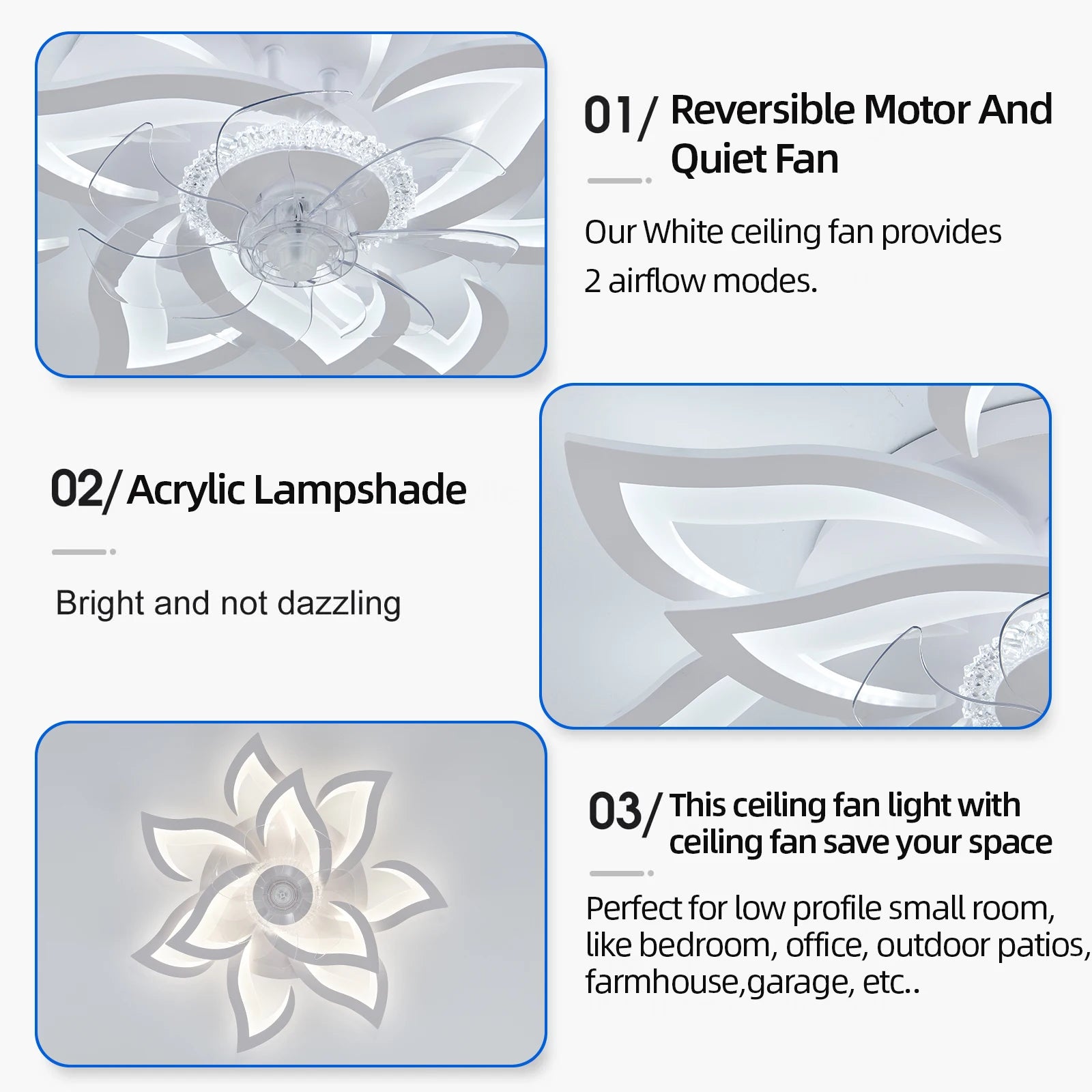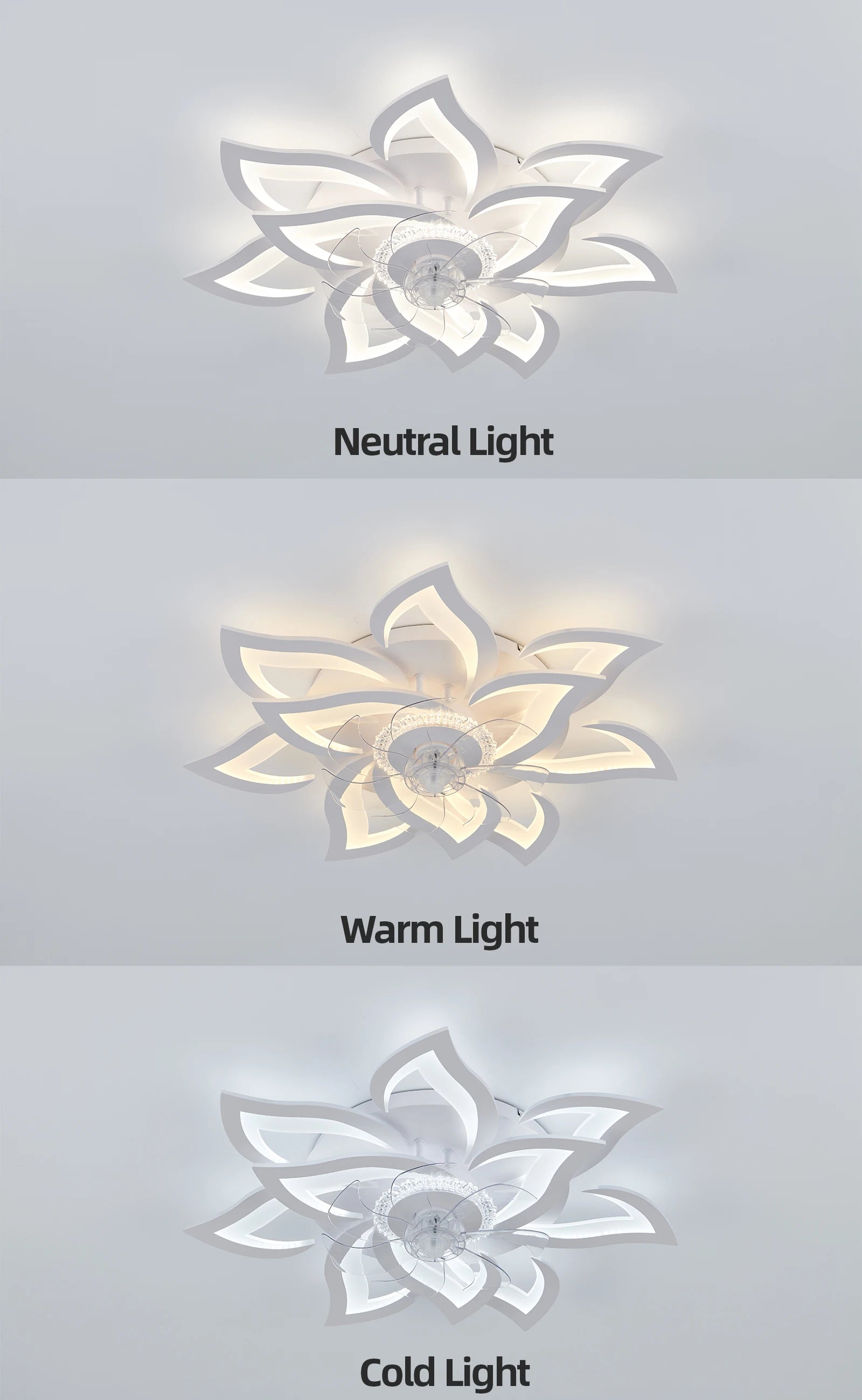 Scopri il ventilatore da soffitto smart di nuova generazione con design floreale elegante e tecnologia avanzata. Perfetto per camera da letto, soggiorno o ingresso.