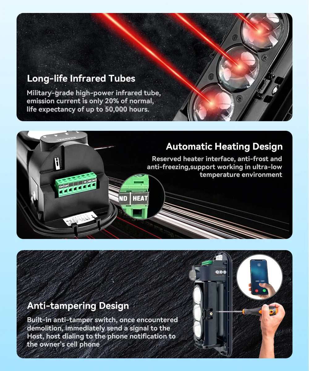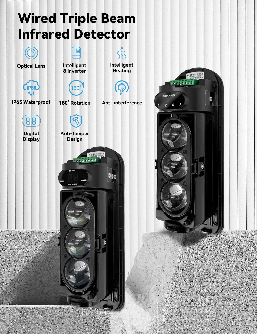 - Doppia/Tripla Barriera Infrarossi – Tecnologia avanzata che riduce i falsi allarmi e garantisce rilevamento preciso