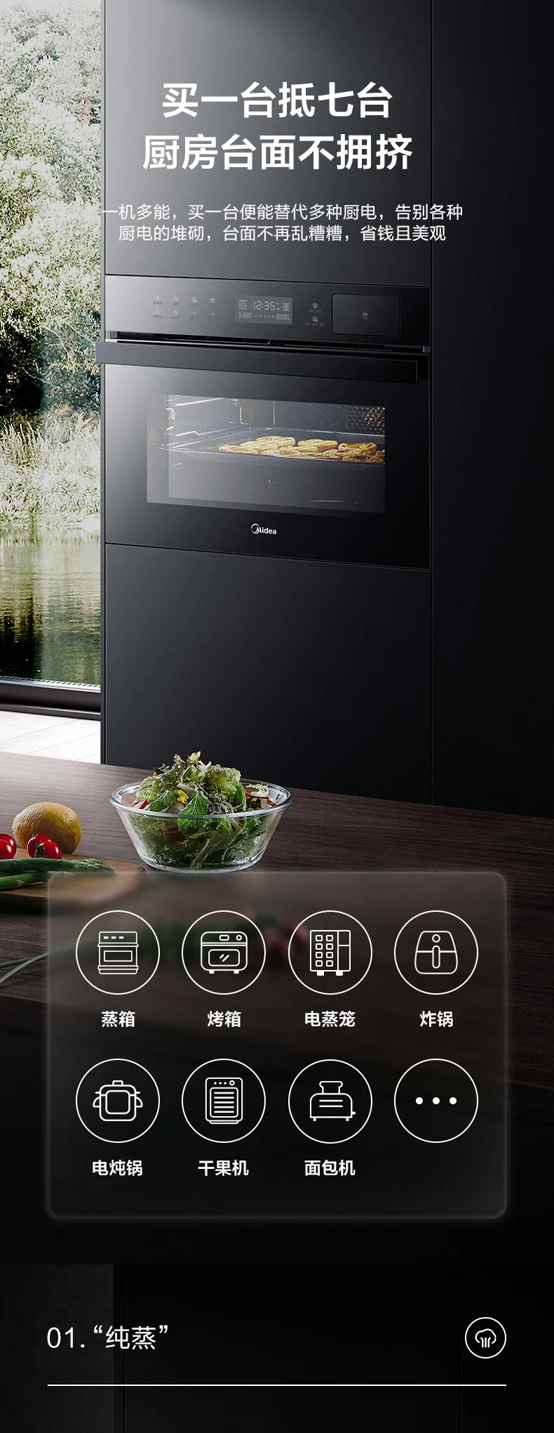Forno da Incasso Midea Smart 2-in-1 – Vapore & Grill 55L Multifunzione con Pulizia Automatica