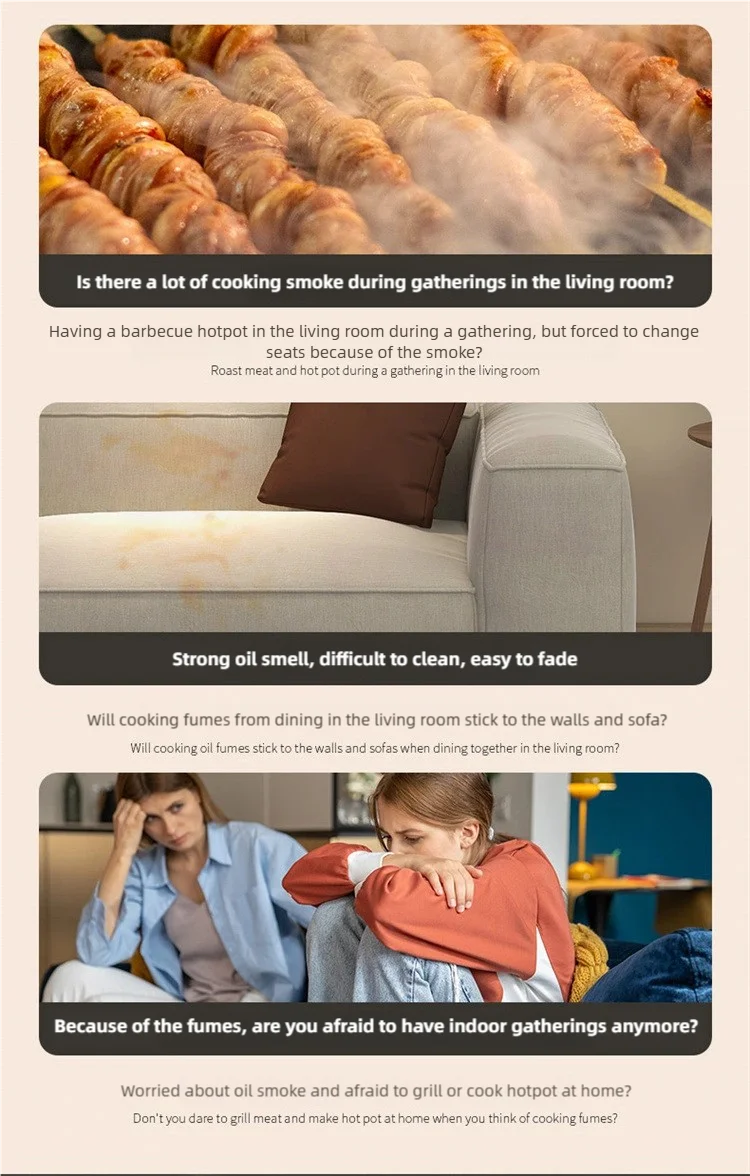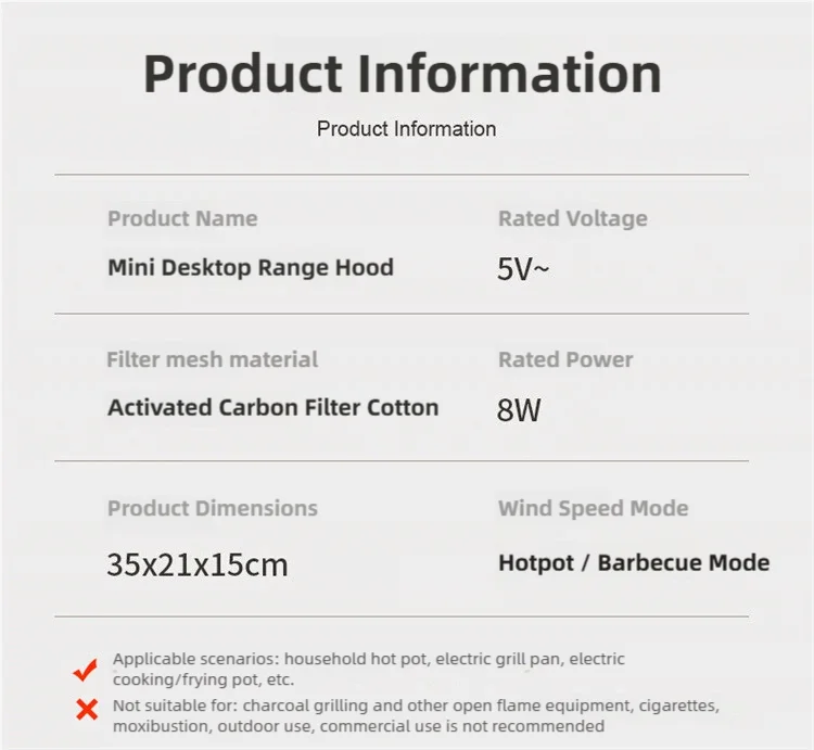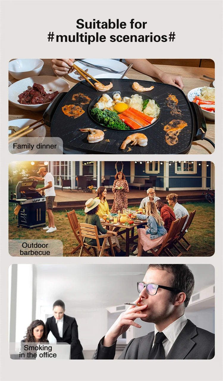 Elimina odori e fumi in modo efficace con questa mini cappa aspirante da tavolo. Perfetta per cucine domestiche, ristoranti, hotpot, barbecue e grigliate, mantiene l'aria pulita e fresca ovunque tu cucini.