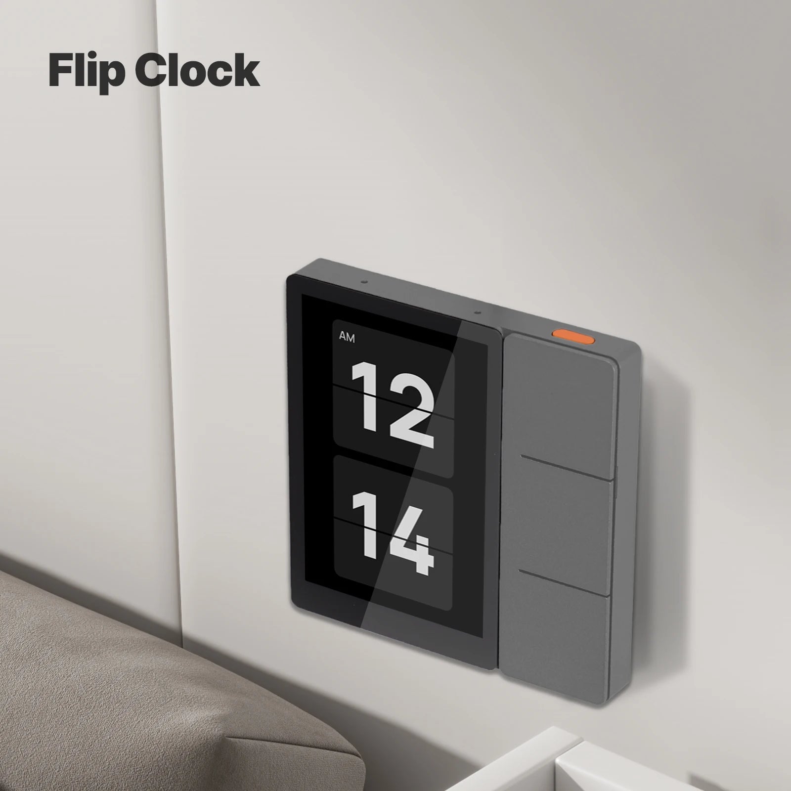 Quando non in uso, il pannello si trasforma in un elegante orologio digitale Flip Clock, diventando un elemento decorativo che unisce tecnologia e design. Perfetto per ingresso, soggiorno o camera da letto.
