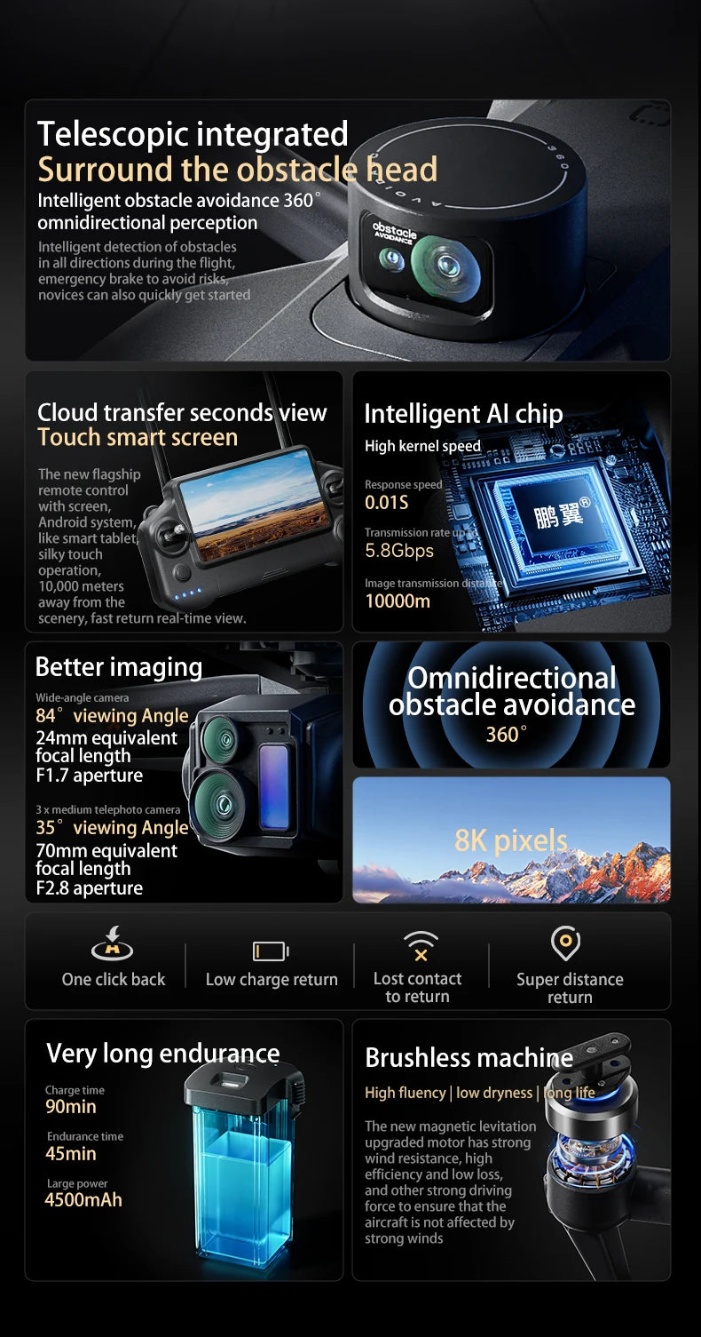 Il P7 MAX è un drone GPS professionale di fascia alta progettato per chi cerca il massimo delle prestazioni. Con camera 8K, trasmissione digitale fino a 20 km e radiocomando con schermo integrato, questo quadricottero brushless offre un'esperienza di volo senza compromessi.