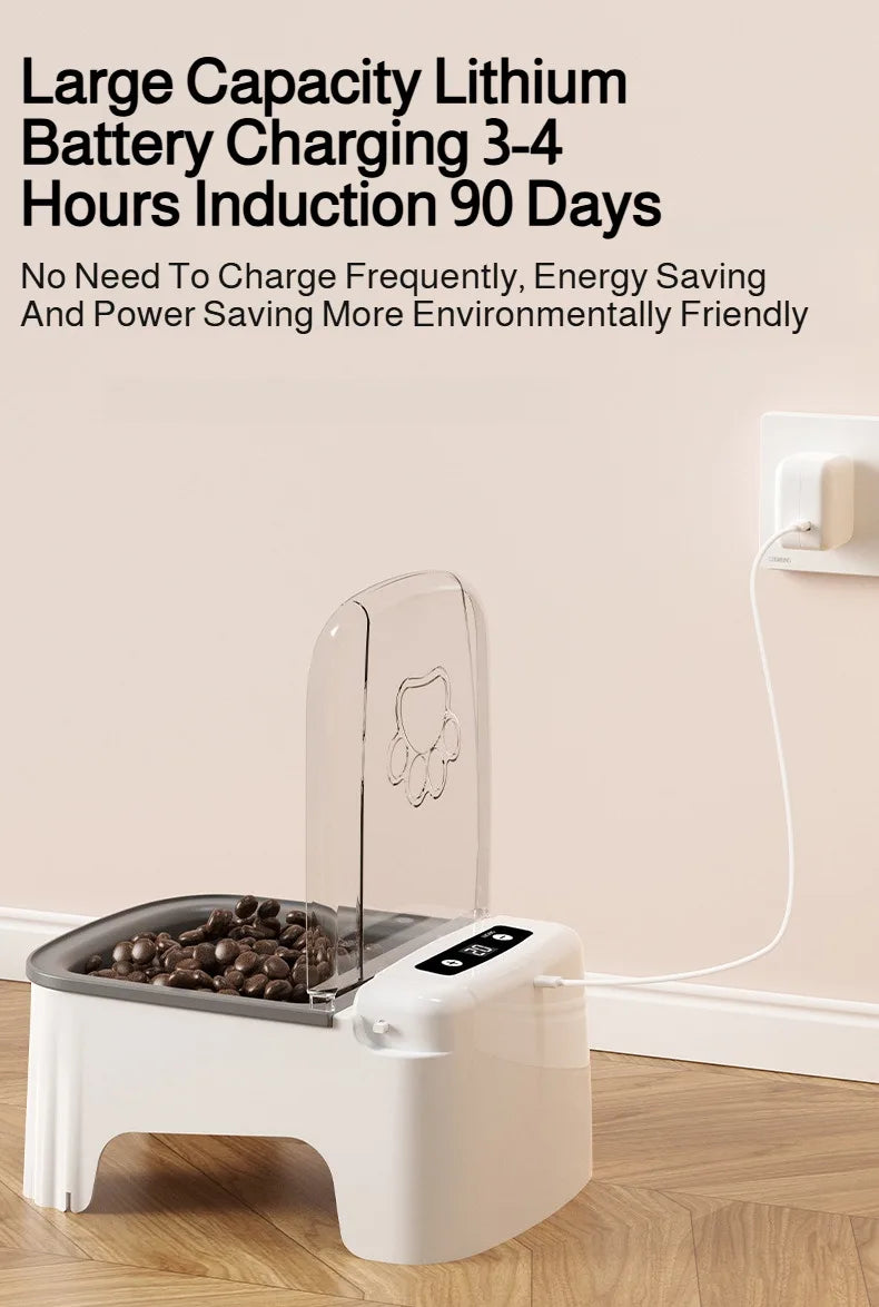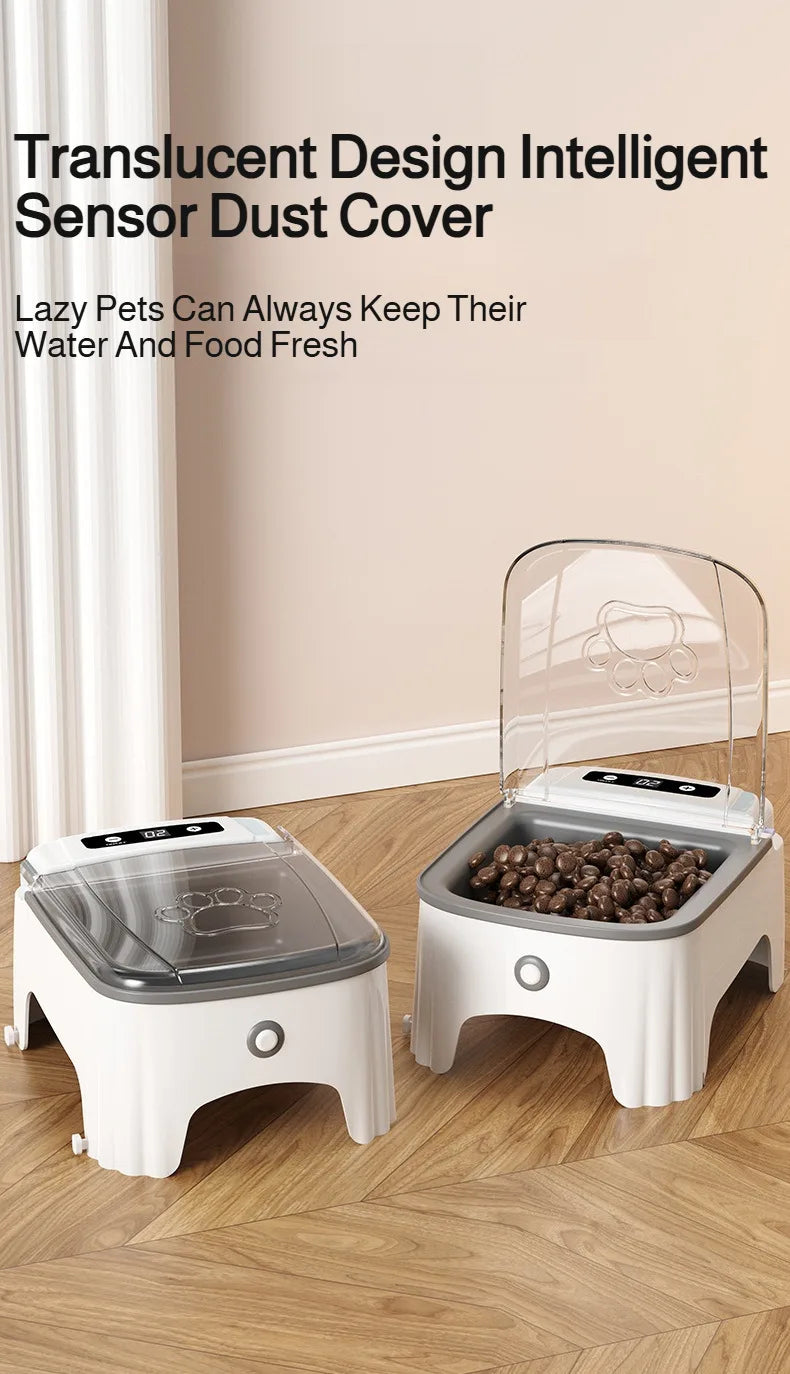 Immagina il tuo pet che si avvicina alla ciotola e il coperchio si apre automaticamente, rivelando cibo fresco e protetto. Perfetta per mantenere l'igiene, ridurre gli sprechi e garantire che ogni pasto sia sempre nelle migliori condizioni. Il design rialzato favorisce una postura corretta durante l'alimentazione, riducendo lo stress su collo e articolazioni.