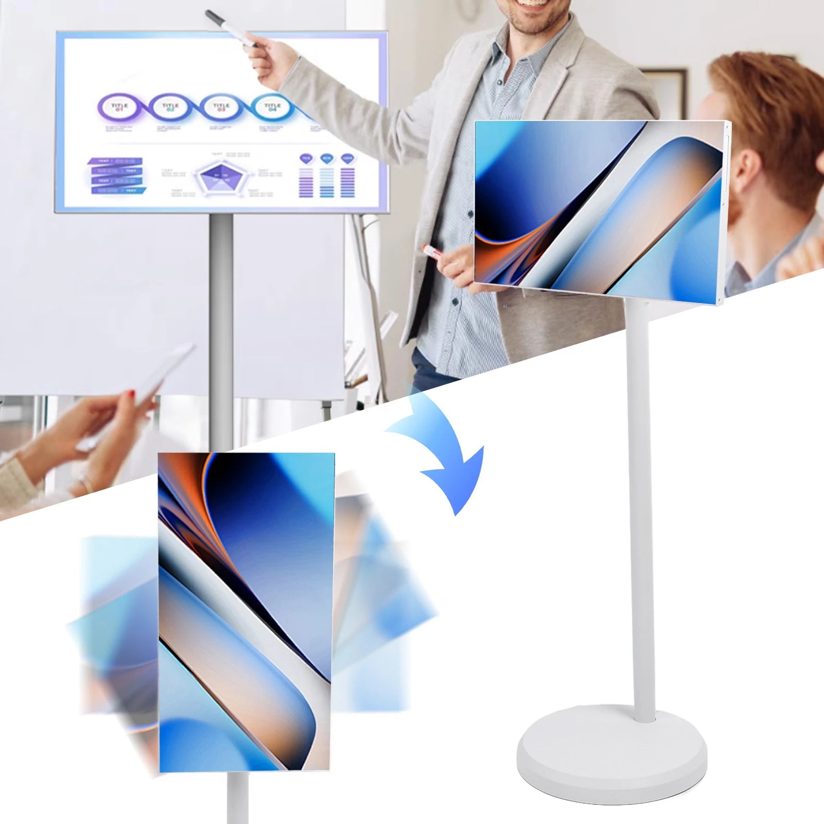 Rolling TV 21.5 Inch TFT HD LCD Rotatable Touch Screen Wireless BT 6G 128G Phone Screen Casting Portable TV On Wheels for Live Streaming