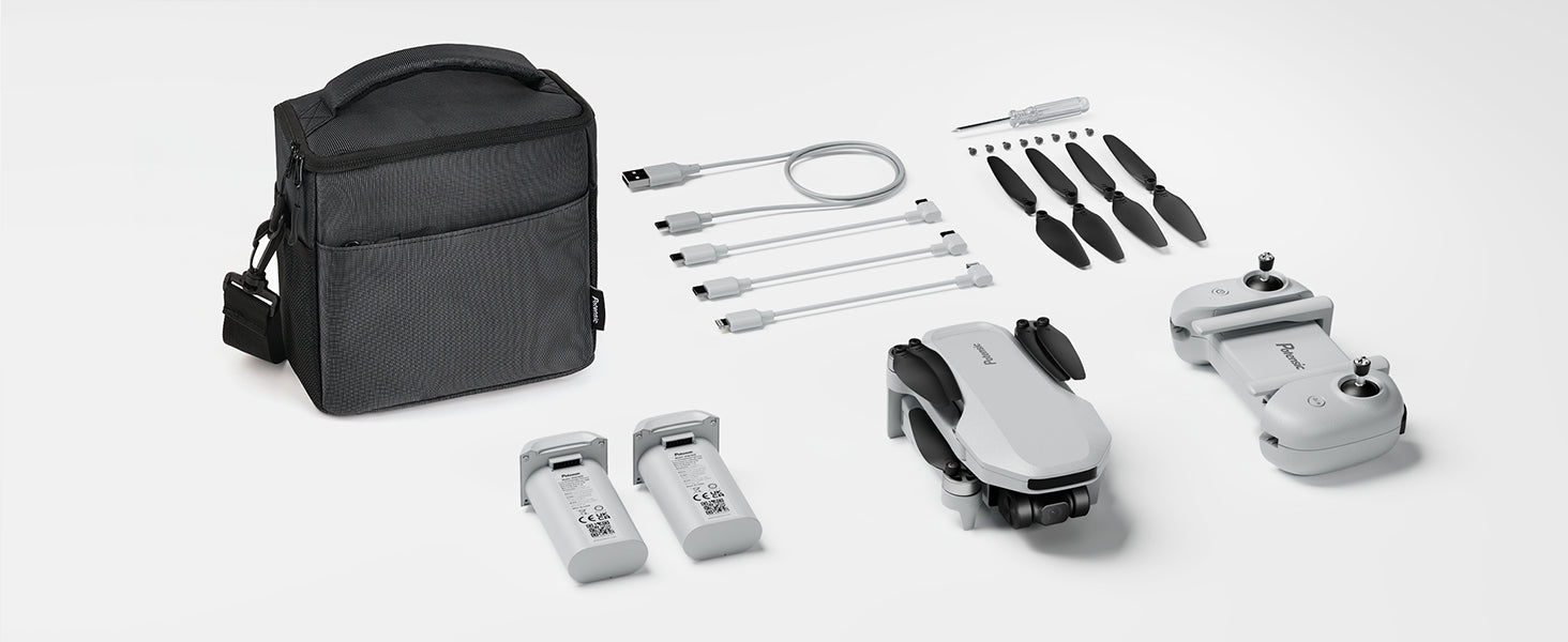 Contenuto della confezione: Drone Potensic ATOM SE, 2 batterie, radiocomando, cavi di ricarica, eliche di ricambio, manuale utente.