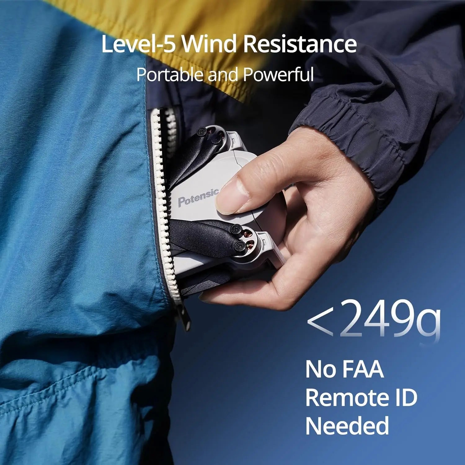Il Potensic ATOM SE è il drone perfetto per chi cerca prestazioni professionali in un formato ultra-compatto. Con un peso inferiore a 249g, non richiede registrazione in molti paesi, rendendolo ideale sia per principianti che per piloti esperti.