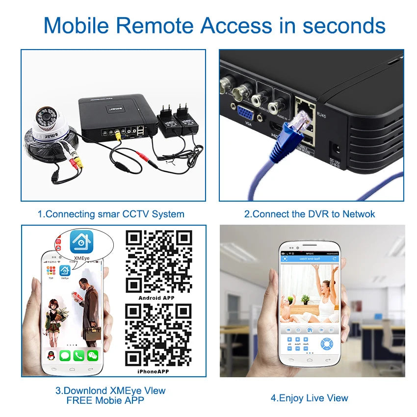 Il sistema di videosorveglianza Smar 1080P offre una soluzione completa per la sicurezza domestica. Con 4 canali DVR H.264 e telecamere ad alta definizione, monitora ogni angolo della tua casa con immagini nitide e dettagliate.
