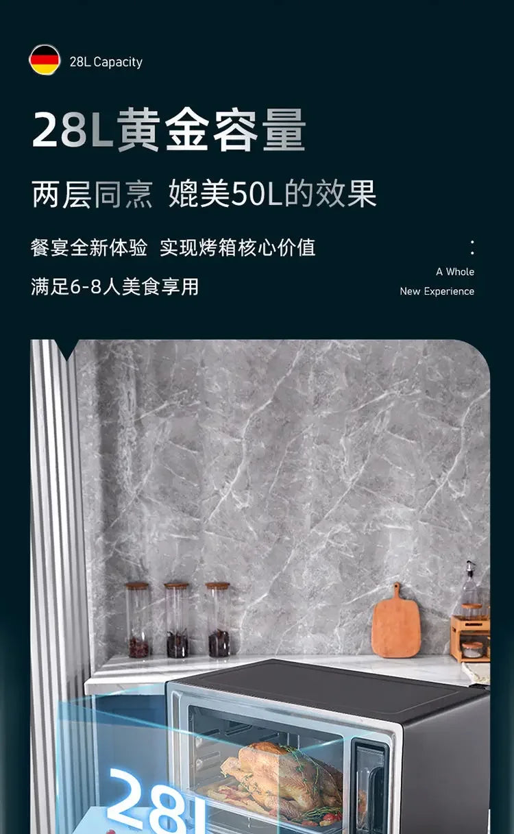 Il forno Smart Haoyunma da 28 litri combina la potenza della cottura tradizionale con la delicatezza del vapore, in un’unica macchina compatta e dal design dorato. Ideale per pane, arrosti, verdure e dolci, preserva gusto e nutrienti grazie alla tecnologia SteamBake. Perfetto per cucine moderne, famiglie esigenti e chi ama cucinare con stile.