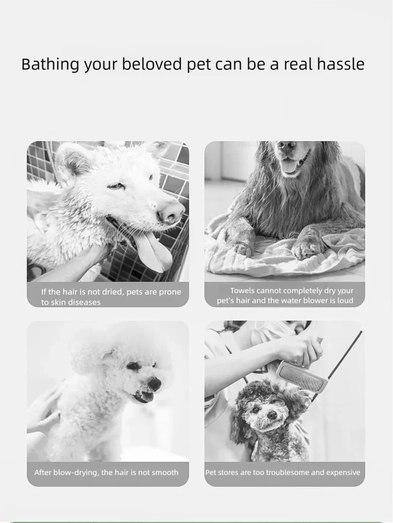 Immagina di ridurre il tempo del bagno del tuo pet da un'ora stressante a pochi minuti piacevoli. Con questo asciugacapelli 2in1, il pelo si asciuga rapidamente mentre viene spazzolato, risultando morbido, lucido e senza nodi. Perfetto per cani a pelo lungo, gatti persiani o dopo passeggiate sotto la pioggia.