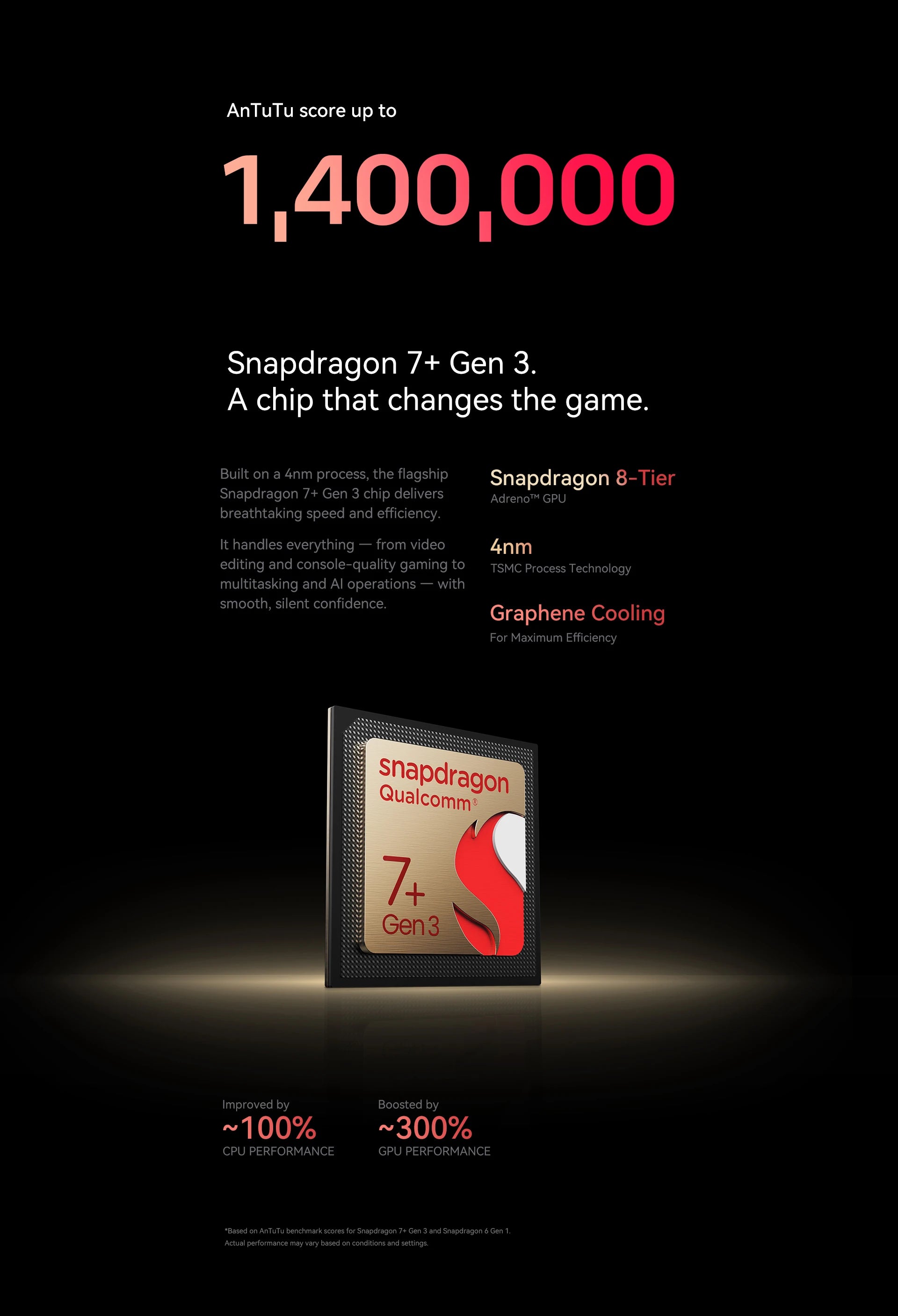 - Snapdragon 7+Gen3: Processore di ultima generazione per prestazioni AI avanzate e multitasking estremo