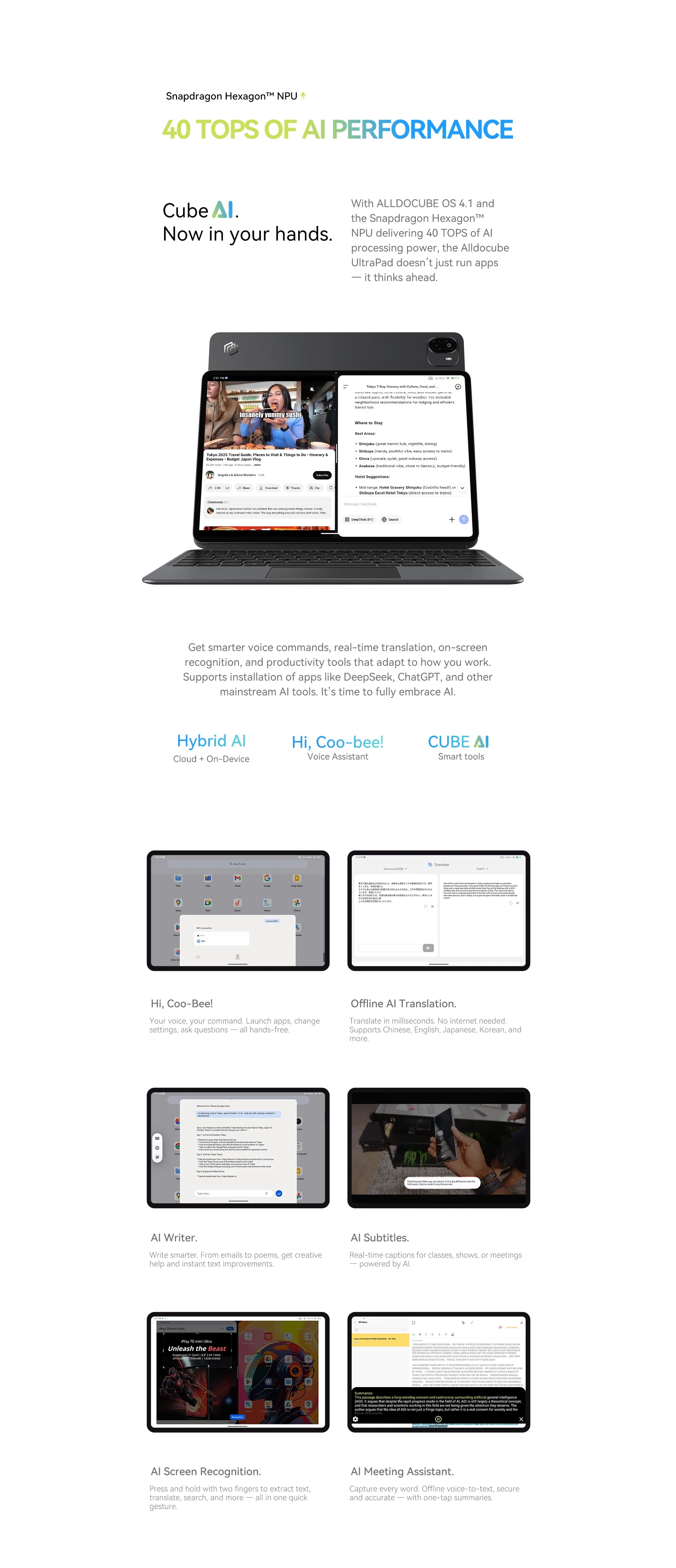 Grazie alla tecnologia Cube AI integrata e al potente Snapdragon 7+Gen3, questo tablet offre funzionalità intelligenti per produttività, editing fotografico, gaming e intrattenimento. Il display 2.8K a 144Hz garantisce un'esperienza visiva fluida e coinvolgente, ideale per contenuti multimediali, gaming e lavoro creativo.